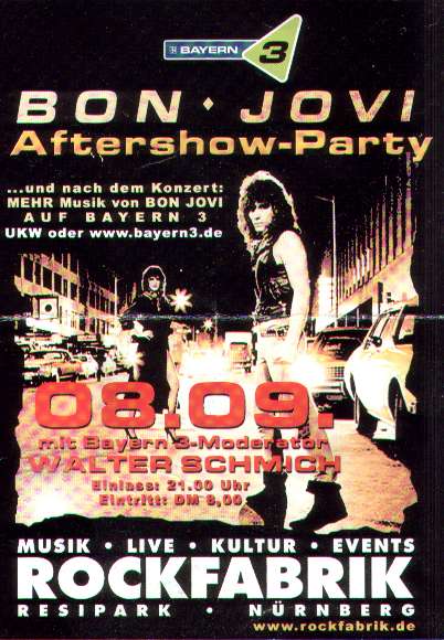 Nach dem Konzert (mit großem Feuerwerk), an dem 70.000 Leute waren, gingen wir zurück zum Bahnhof um Jacky nachzutanken, anschließend in die Rockfabrik zur Bon-Jovi Afterparty.